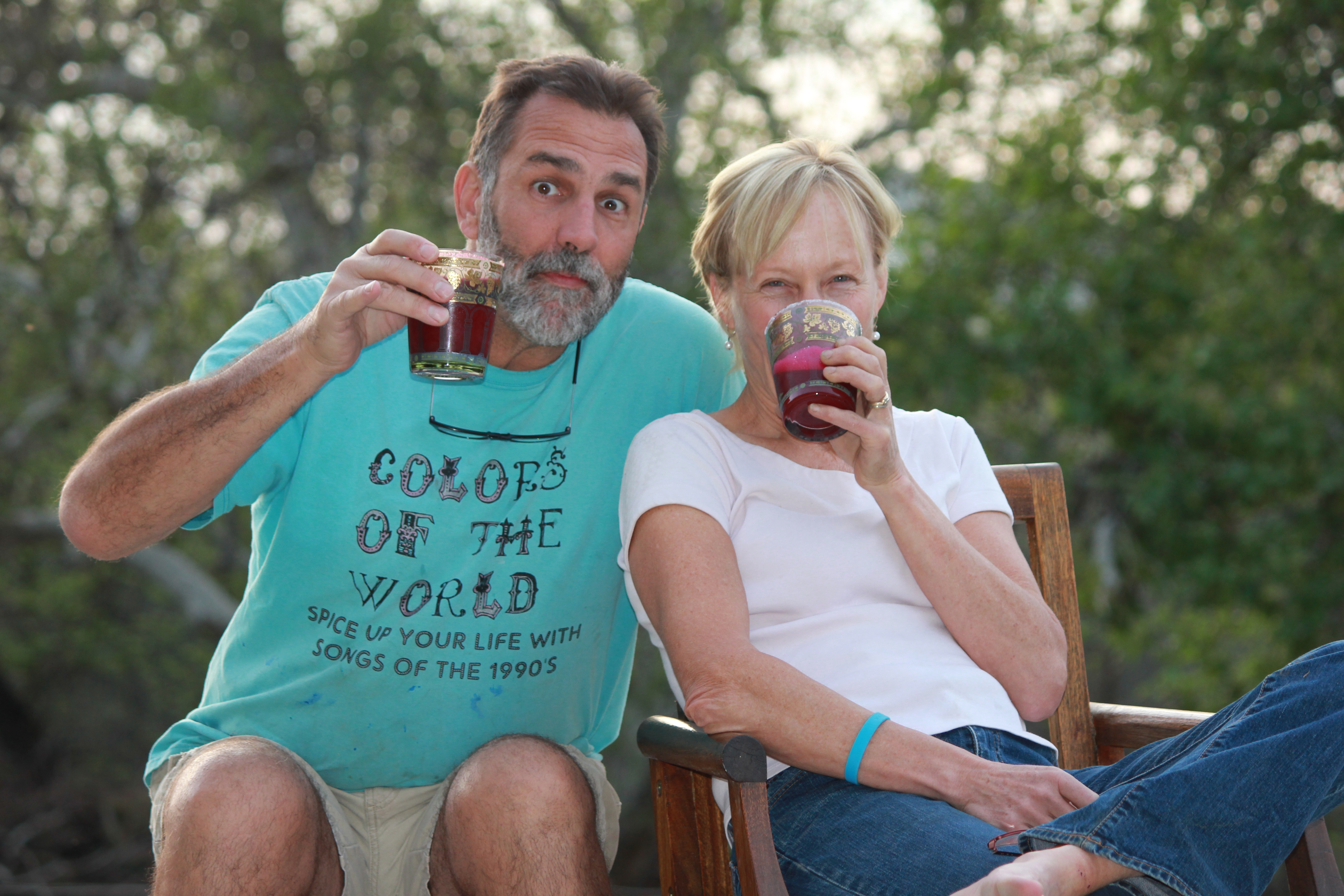 Drink. With friends or just the two of us, we like to relax in the evening with a bottle of good wine. Within 100 miles are Paso Robles and the Far-out Wineries of Templeton, where my parents grow wine grapes (ONX Wine). My brother-in-law also makes excellent reds (JB Wines), and we have neighbors with an award-winning winery (Cedar View). Surrounded by such bounty (and competition), Greg first embarked on beer-making (Kings River Brewery); and, although he buys many of the ingredients at Bencomo, a Fresno brew supply store, he flavors his beers with home-grown lemongrass, blue curl (a sage-like wildflower), oak chips, or spices from the garden. Satisfied with his brewing success, he has planted 50 grapevines and the absentee next-door neighbor planted 125; with these, Greg is making Petite Syrah and a Grenache, Syrah, Mourvedre blend. We buy coffee, tea and chocolate for cocoa without apologies, but when I admitted that, unreasonable as it may be, I still wanted sparkling water, Greg said not to fret. He came back from his brewery in the barn with three bottles of lime-flavored bubble-water and said he could make it with the mint, citrus or berry if I wanted.