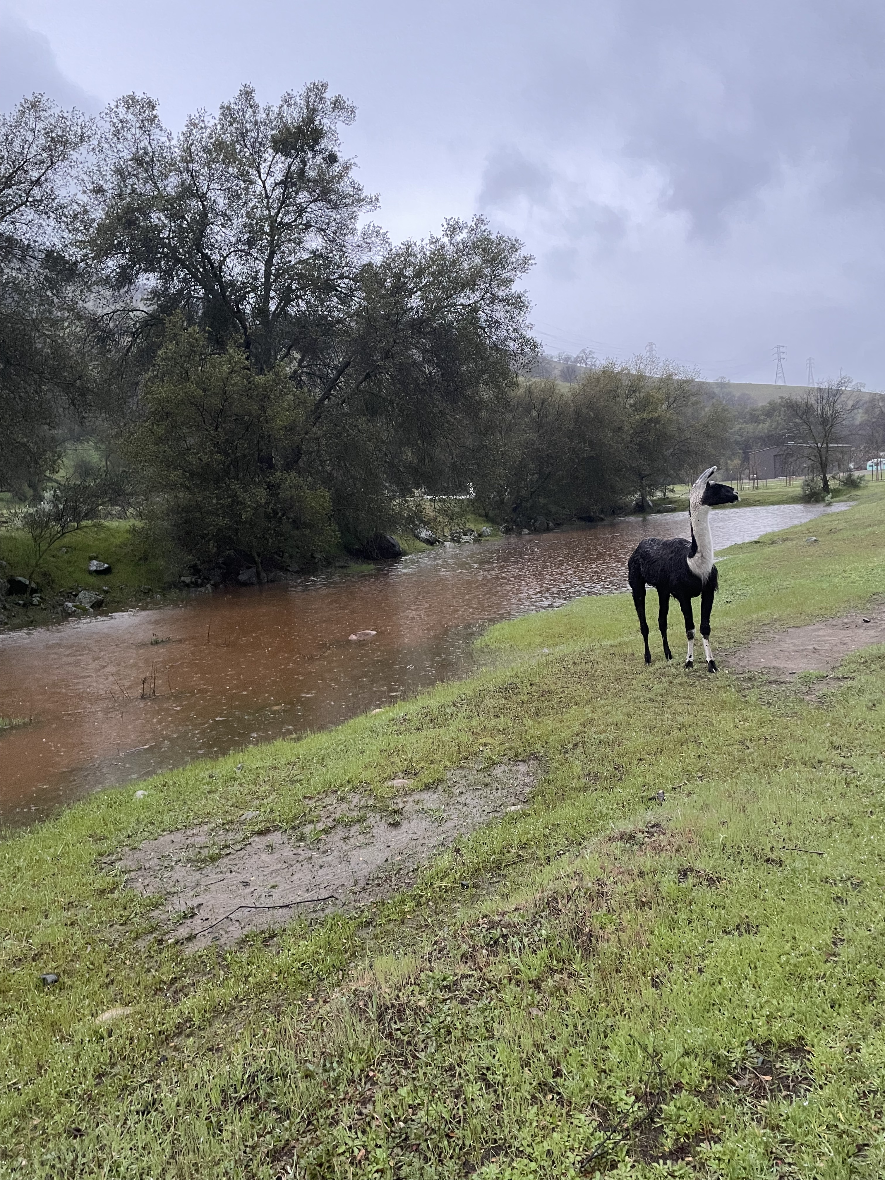 The animals aren’t crazy about this weather. Greg calls the pool in the llama yard Loch Nessie (her name is Nessie).